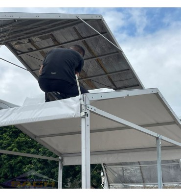 Tarpaulin: The top tarpaulin (980g/m²) uses high-quality polyethylene filament as the base fabric, and the surface is coated with PVC film, white, windproof, fireproof, ultraviolet ray, flame retardant, etc. Surrounding fabric (650 g/m²) with windows.