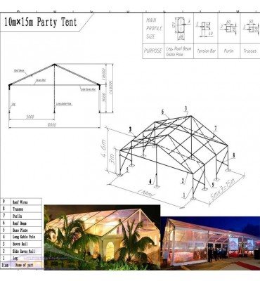 Lona: A lona superior (980g/m²) utiliza filamento de polietileno de alta qualidade como tecido base, e a superfície é revestida com filme de PVC, branco, à prova de vento, à prova de fogo, raio ultravioleta, retardador de chama, etc. Tecido envolvente (650 g/m²) com janelas.