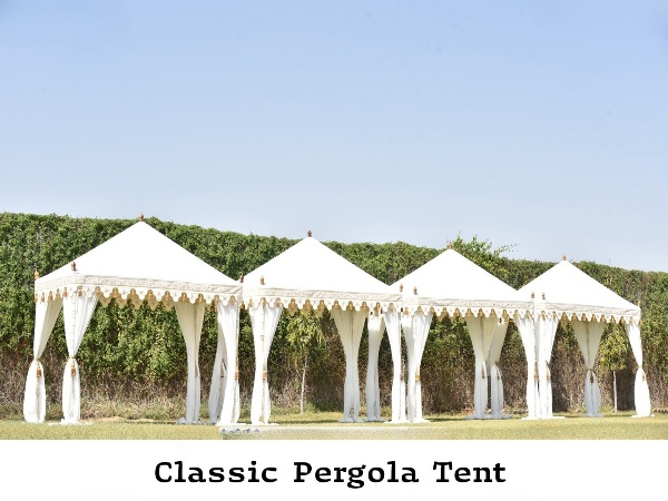 Concebidas para quem gosta de atividades ao ar livre, faça chuva ou faça sol, as nossas Tendas Pérgola são construídas para resistir às intempéries. Personalizamos as nossas Tendas Pérgola com tecidos e acabamentos feitos à medida das suas necessidades. Cada Tenda Árabe é única, um testemunho da arte e dedicação dos nossos designers qualificados. Perfeitas para festas elegantes ou escapadelas privadas, as nossas Tendas Pérgola elevam a vida ao ar livre a um novo patamar. São mais do que apenas acomodações; são um símbolo de opulência e alegria.