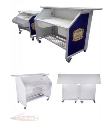 Disponibilizamos uma grande variedade de cores e opções de acabamento, para que possa escolher o bar perfeito para a sua estética e decoração. Desde os acabamentos clássicos em madeira ao moderno aço inoxidável, dispomos de um bar que complementará qualquer espaço para eventos.